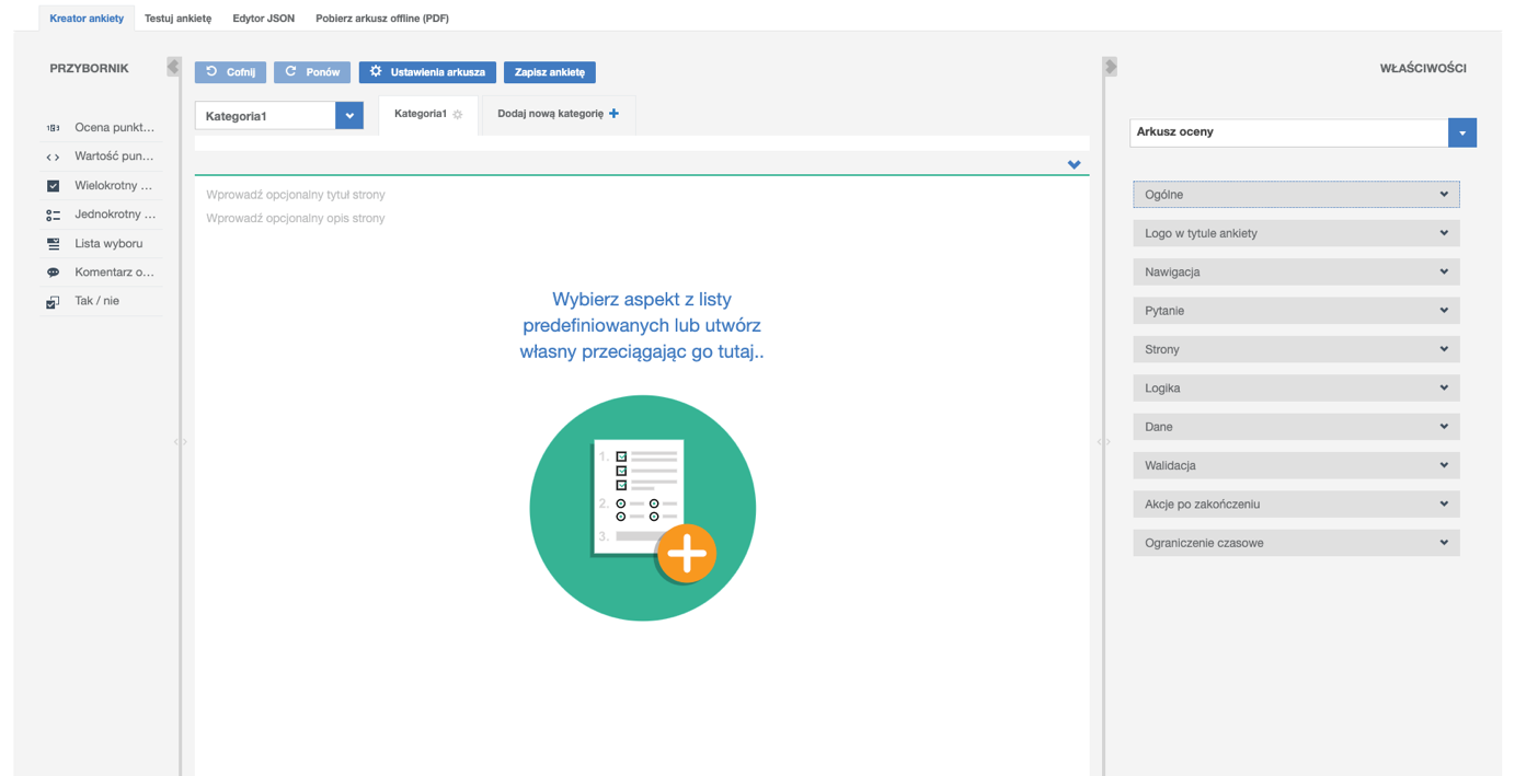 A la derecha, puedes ver las propiedades de la hoja de trabajo y un botón para ir al modo avanzado de creación de formularios. Las opciones que se muestran en la configuración también dependen del tipo de evaluación. La configuración te permite, por ejemplo, establecer la lógica del formulario, establecer el tiempo máximo para completar el formulario, agregar el logotipo del club en formato PDF al informe, determinar el proceso de validación con respecto al formulario. En el caso del formulario de reclutamiento, también puedes agregar un mensaje de "gracias" que se enviará a la dirección de correo electrónico del encuestado. Además, puedes crear una pantalla posterior al formulario con la información que incluyas. También puedes enviar la encuesta completada en formato PDF al encuestado. Para guardar el formulario, presiona el botón azul "guardar encuesta" ubicado en la parte superior. Después de guardar, serás redirigido a la lista de hojas de trabajo creadas.